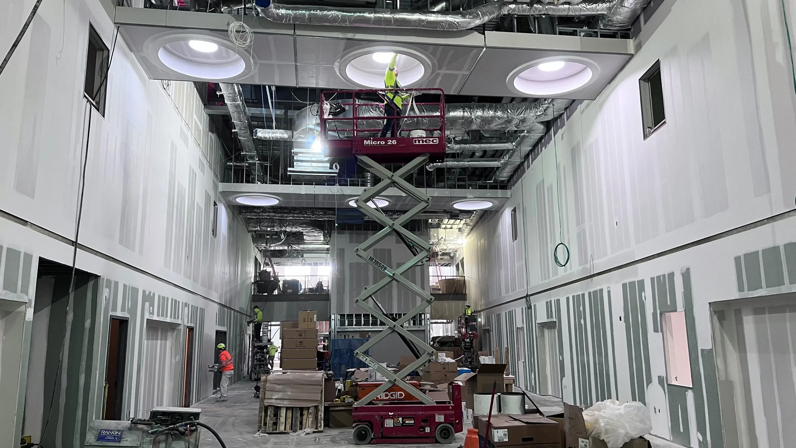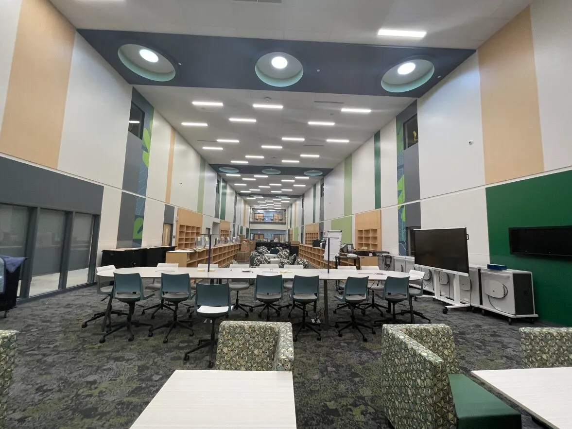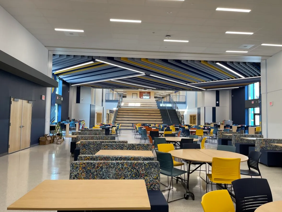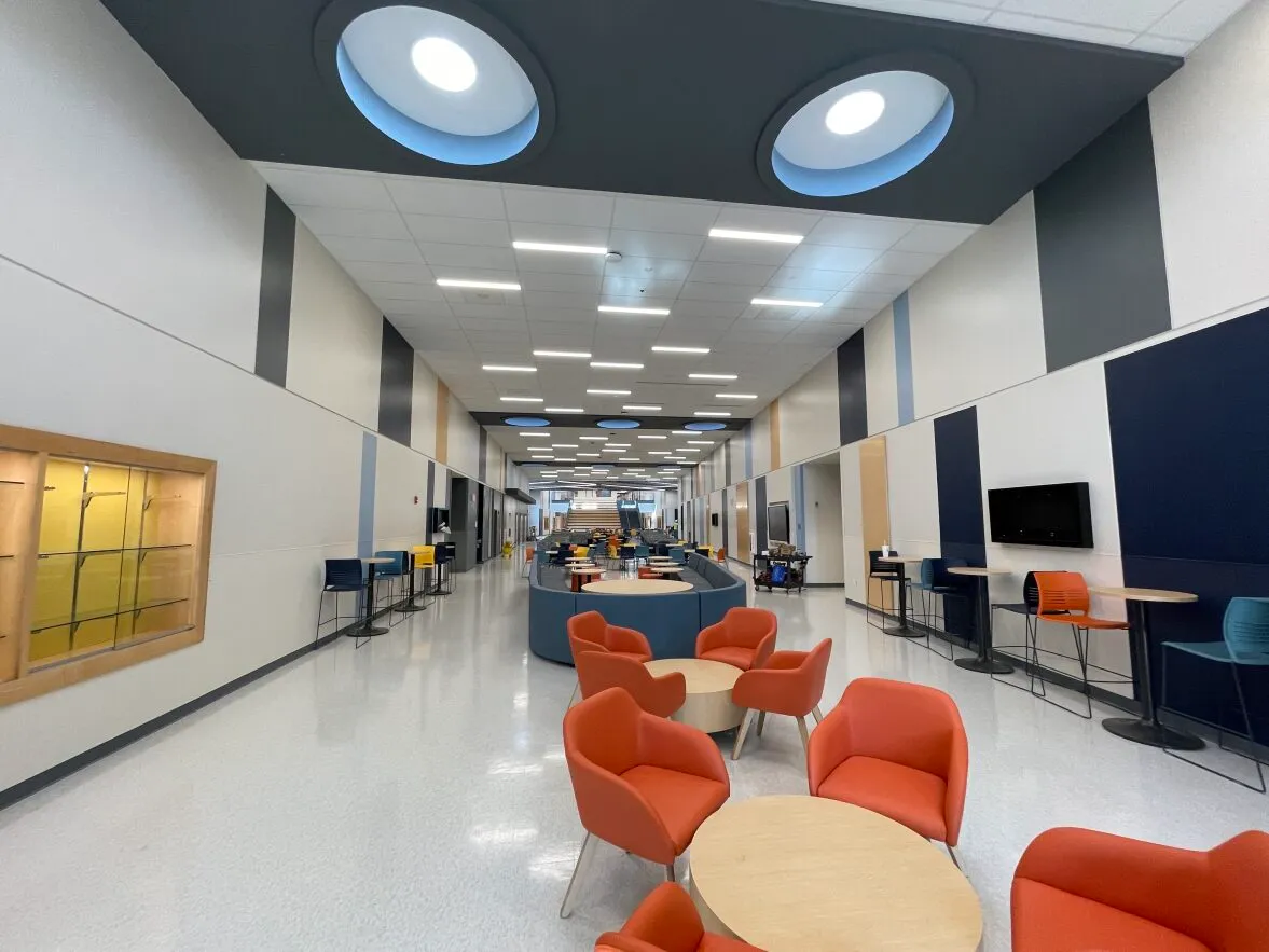 While we worked on many different elements of these schools – there were several special installations that we are proud of our team for executing. The project featured a radius drywall soffits and bulkheads system that supported the LEED certified Solatubes. Solatubes are a modern alternative to traditional skylights that bring natural light into the schools common spaces.
